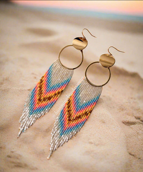Hummingbeadwoman creates beadwork inspired by ancestral blood memory. Each piece is made with a good heart and mind. Beadwork is a luxury that carries generations of skill and knowledge. Every stitch is an act of love, revitalization, and five living generations’ worth of dreams.